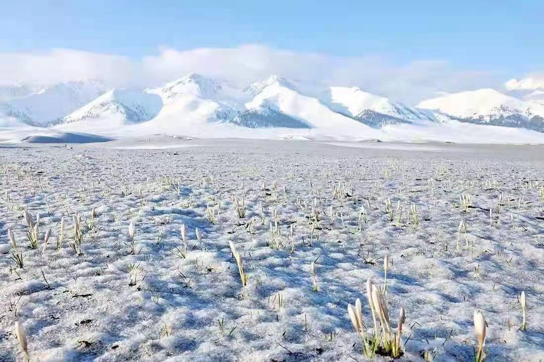 早餐后前往【那拉提空中草原】随着气温的逐步升高, 伊犁那拉提空中草原的冰雪逐渐消融,野百合在涓涓雪水的滋养下悄然绽放,因为顶着冰雪开放而得名,是那拉提开放的第一朵花,因此也被称为“顶冰花”。