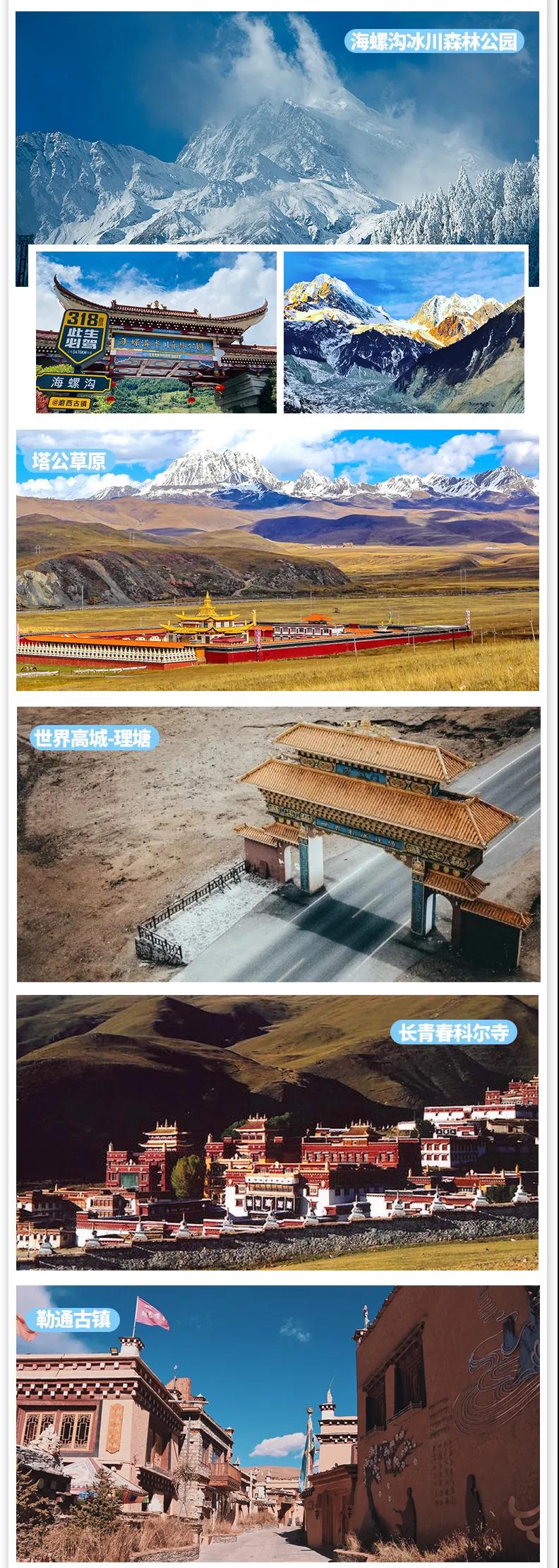 稻城亚丁+新都桥+理塘+玛尼河谷+墨石公园+塔公草原+海螺沟冰川森林公园+天路十八弯