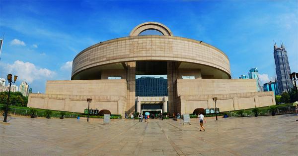上海博物馆创建于1952年,原址南京西路325号旧跑马总会,1959年10月迁入河南南路16号中汇大楼,现址上海市中心人民广场的南侧黄浦区人民大道201号。1993年8月,上海博物馆新馆开工建设,1996年10月12日全面建成开放。上海博物馆建筑总面积39200平方米,占地面积1.1万平方米,地下二层,地上五层,高29.5米,总投资5.7亿元。新馆是方体基座与圆形出挑相结合的建筑造型,具有中国“天圆地方”的寓意。馆名“上海博物馆”为上海第一任市长陈毅书写。
