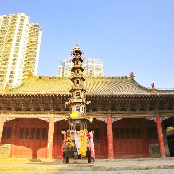 塔尔寺位于西宁市南25公里处的湟中县。塔尔寺是我国藏传佛教格鲁派六大寺院之一,是藏传佛教格鲁派(黄教)寺院,全称衮本绛巴林,意为十万金身慈氏州,是格鲁派即黄教创始人宗喀巴的诞生地。该寺正式建于明朝万历5年(公元1577年),1749年,乾隆皇帝曾御赐寺额"梵宗寺"。塔尔寺是1961年国务院第一批公布的全国重点文物保护单位之一,是藏汉建筑艺术相结合的佛教园林建筑群。寺内藏有丰富的文物,包括各种法器、千姿百态的佛像和浩瀚的藏文、蒙文和满文佛经和碑刻,是一座佛教艺术宝库。塔尔寺建筑物高低起伏,错落有致,集藏、汉、梵建筑风格于一体。