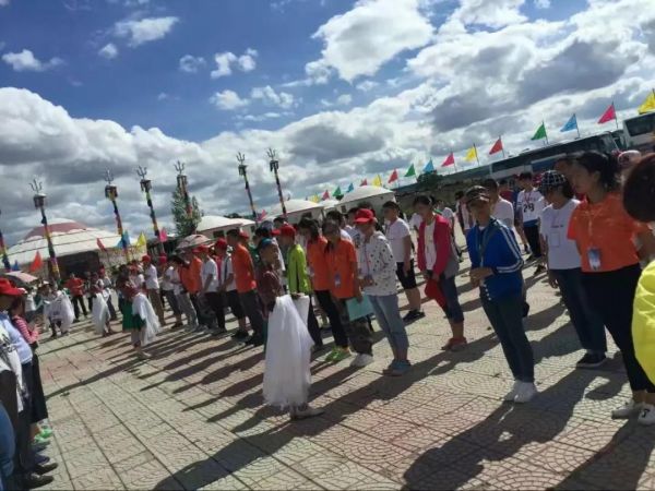下午:来到了美丽的安固里草原,蒙古族小伙和姑娘们载歌载舞,为营员献上洁白哈达,递上蒙古欢迎礼节 “下马酒”。