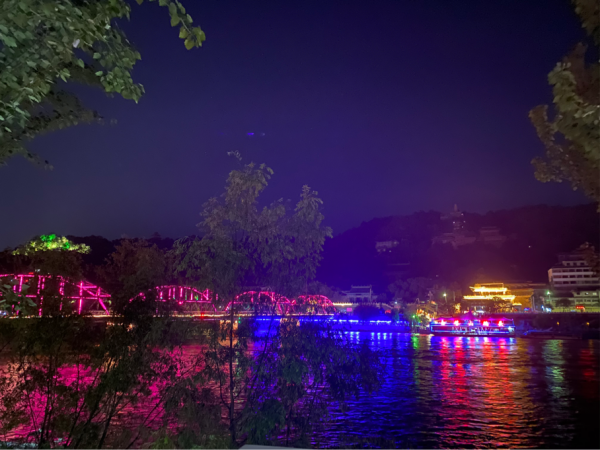 晚上到达兰州,从夜市逛到中山桥。一路上遇到的司机性格热情朴实,逛了逛司机推荐的夜市,但是感觉东西质量不大行,拿了杯灰豆子从夜市步行到中山桥,途中可以看到河边的夜景。据说中山桥是德国公司承建,保质期一百年,现已到期,不再通行车辆。晚上的中山桥上是城市娱乐生活的集散地,小摊小贩和鲜花音乐。