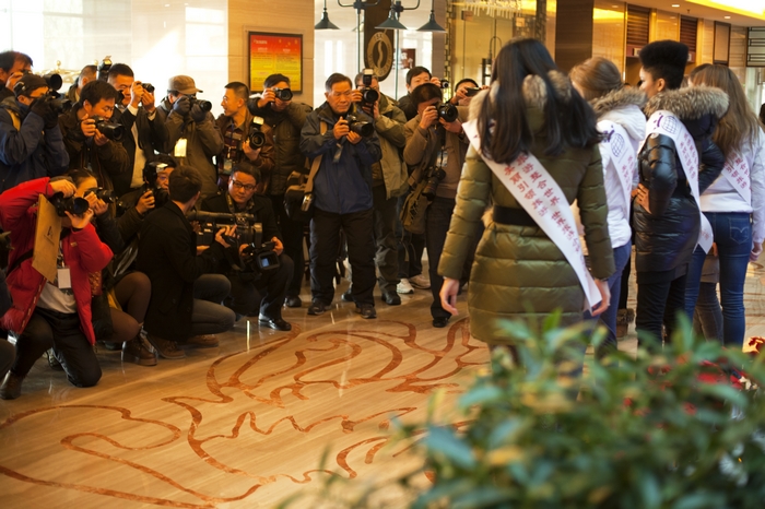 各路记者和摄影师们一起在阿尔卡迪亚国际酒店拍摄世界旅游小姐: