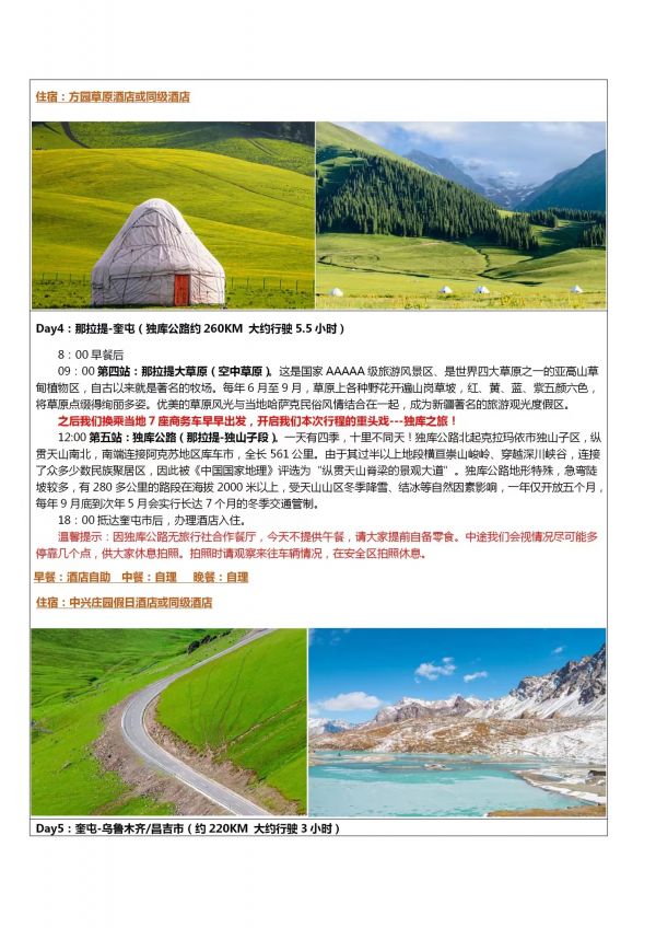 伊利-独库双飞8日游 聊城发团 纯玩 无购物 乌鲁木齐 赛里木湖 果子沟大桥 薰衣草庄园 伊宁 那拉提草原 巴音布鲁克 独库公路 独山子大峡谷 天山天池 吐鲁番坎儿井 火焰山 ...... 发团时间 20230615 价格 3880 报名电话 0635 8681234