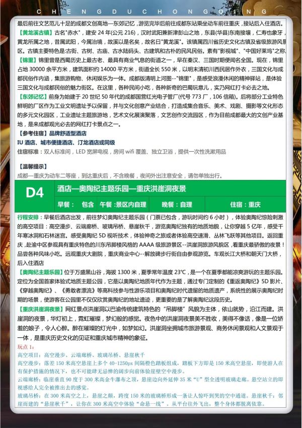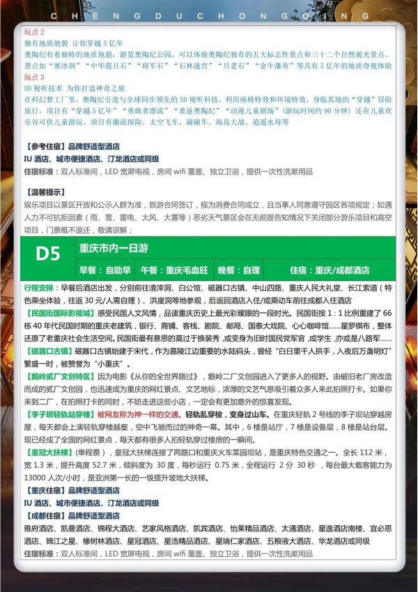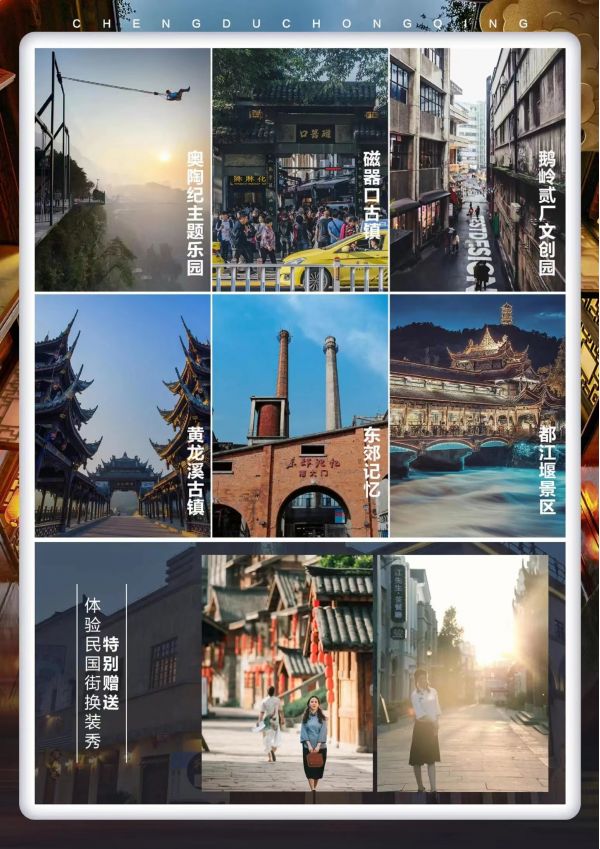 成都-重庆双飞6日游 聊城发团 纯玩 无购物 大熊猫基地 川菜博物馆 南桥都江堰景区 灌县古城西街 黄龙溪 锦里 奥陶纪云端廊桥 玻璃吊桥 悬崖秋千 步步惊心 千年寒冰洞及市区网红民国街 磁器口 鹅岭二厂文创园 李子坝轻轨穿墙 皇冠大扶梯 洪崖洞 发团日期 20230616 20230626 价格 4790 报名电话 0635 8681234