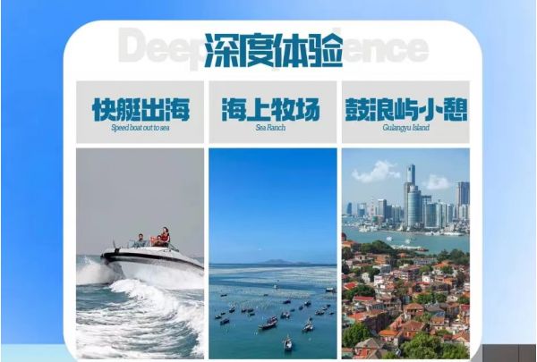 “玩沙戏水”:厦门环岛路沿海而建,又名五色路:蓝色的大海、金色的沙滩、绿色的草地、红色的跑道、灰色的公路。在环岛路边有“一国两制,统一中国”的巨大标语,与金门隔海遥遥相望。这是当年炮轰金门“蒋匪”,到隔海喊话、气球飘标语“我们一定解放台湾”,发展到如今的政治标语大PK。驱车在素有“七彩环岛路”的海滨长廊之上,打开车窗,任风吹过耳畔,触摸这略带一丝海腥味的鹭岛海风—美妙、豁然、清爽。对,这就是海的味道,这不正是我们向往的诗与远方!其中观音山段被称为“黄金海岸线”,大海的深处贩卖着蓝色的孤独,温柔的人会带你离开海底。体验漫步在鹭岛海滩,赤脚戏水踩沙的休闲时光。