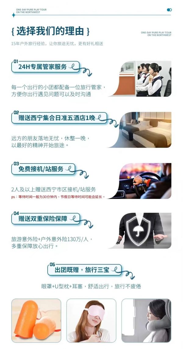 3.到达西宁后自行前往指定酒店入住,办理入住时需要交押金,房费已付,押金自理,报姓名拿房卡。