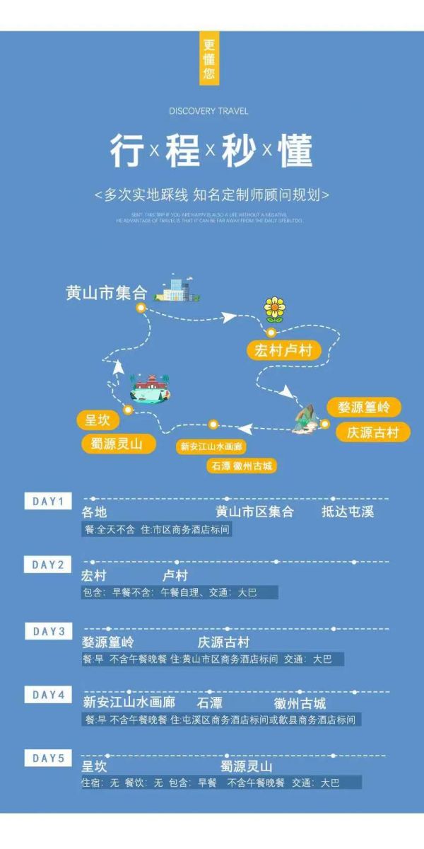 【返程与解散】解散日预计下午16:00抵达黄山市内,建议购买16:30以后或次日返程票。