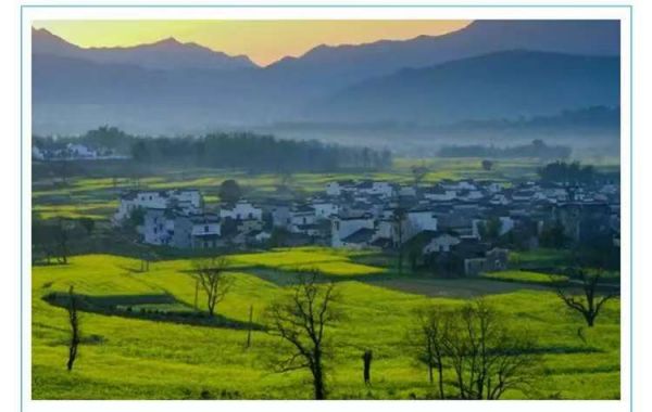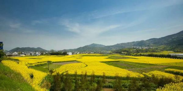 金黄色的花儿从层层梯田沿着山谷流成了海洋。粉墙黛瓦的村落里桃花红、梨花白,还有那满山的树木和曲折幽静的小路。
