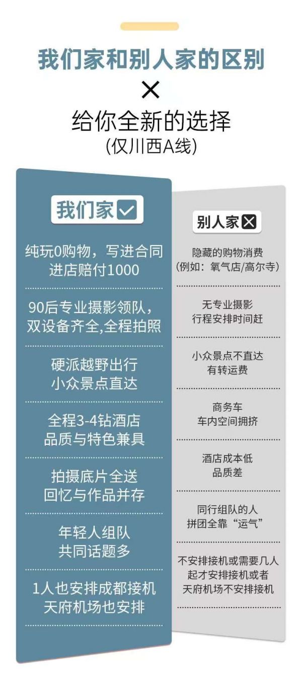 备注:以上项目仅限报名川西A线游客享有,报名九黄B线路游客不享受以上项目(川西A/B线包含如下:)包含成都机场接机/市区接站1次(1-2人天府机场拼车接机);包含80万旅游意外险。