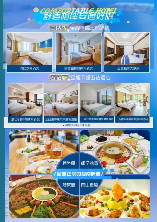 【大小洞天】国家5A级景区(时间不少于120分钟):至今已有800多年历史。大小洞天融汇了秀丽的海景、山景和石景,既可以看到“小洞天”、“海山奇观”、“仙人足”等摩崖石刻,还能参观号称植物中的“活化石”南山不老松。【天涯海角】国家5A级景区(游览时间不少于120分钟):情侣们神往的圣地,不仅有南天一柱,日月神石,丰富的打卡点能戳中你所有的浪漫神经,小红书火出圈的天涯书局、火车、情侣树,还有婚拍基地的教堂、热气球、粉色城堡都超级出片。