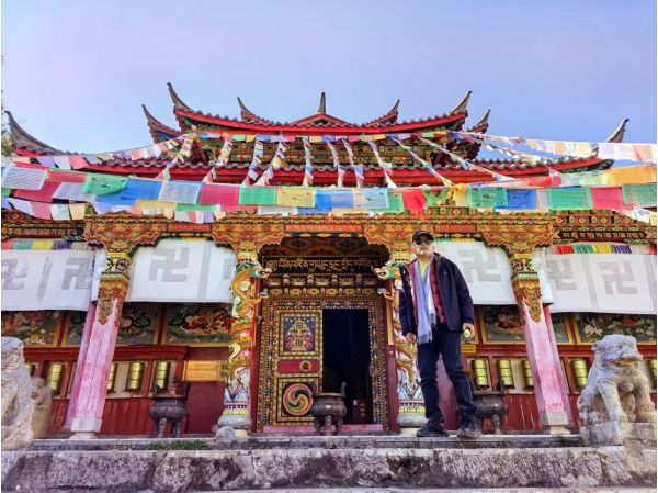 离开拉市海,便寻指云寺而去。这座藏传佛教寺庙隐于山林间,红墙金瓦,禅意悠悠。寺内古树参天,香火袅袅,循着石阶拾级而上,听僧人诵经声穿透晨雾,心中浮躁尽数褪去,只剩一片安宁。