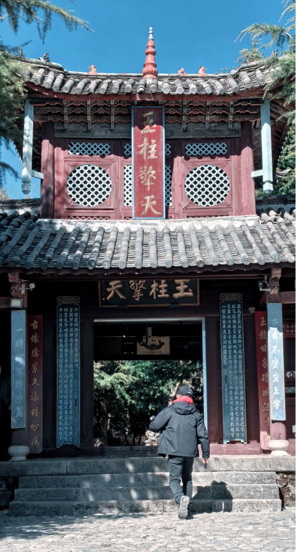 接着,我们奔赴玉柱擎天,这座纳西神山峭壁之上,摩崖石刻历经风霜,字迹却依旧清晰可辨。