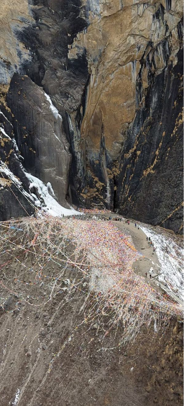 清晨从雨崩村出发,沿着溪流向上,经幡在风中飘扬,刘会长给队员们讲着神瀑的传说,藏地的神秘氛围拉满。