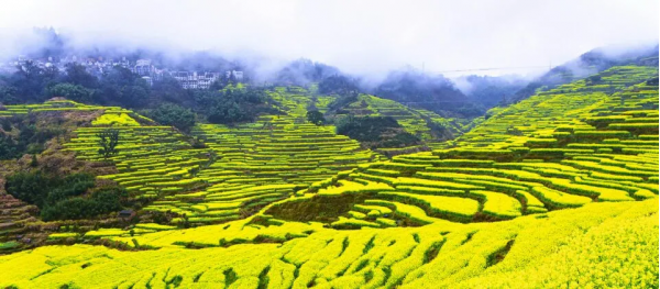 整个徽州便上演巨型的金黄色油菜花团体操...