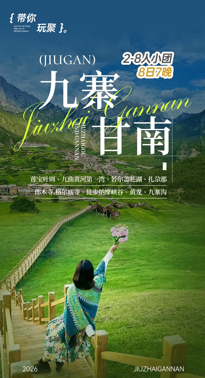 包含莲宝叶则、九曲黄河第一湾、若尔盖花湖、扎尕那、郎木寺.格尔底寺、徒步纳摩峡谷、黄龙、九寨沟