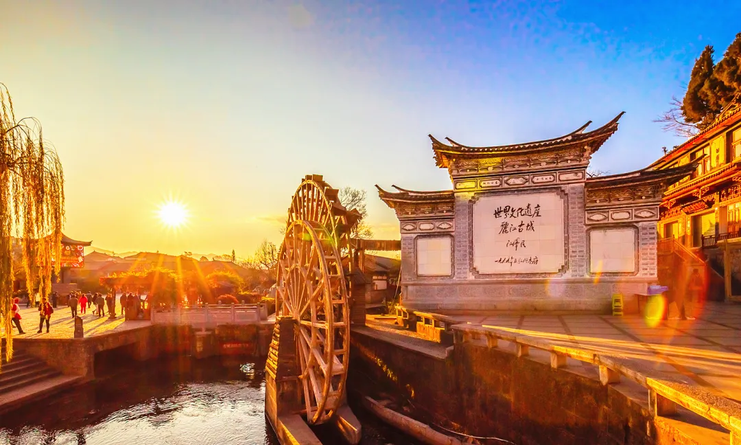 2、其二为【束河古镇】,是茶马古道上保存完好的重要集镇,距今已有1300多年历史,以其古朴的建筑、清澈的泉水和深厚的文化底蕴闻名,核心景区为四方街,青龙桥,飞花触水,九鼎龙潭等景点,酒店打车7Km;