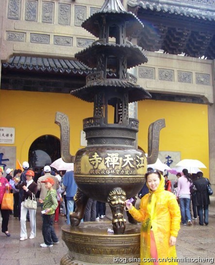 雨中的金山是美丽的,江天禅寺也是美丽的,“树影中流见,钟声两岸闻”不正是形容的金山江天禅寺吗。清康熙帝于1687年秋登临金山,因观其上接苍冥,下连洪流,江天一色,故赐名“江天禅寺”并沿袭至今。可见其景之美啊。今天的游览到此结束了,雨中的金山是美丽的,没有令人失望啊。