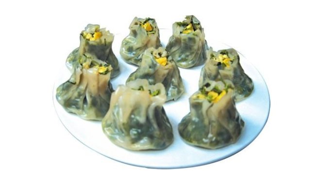 它的制作特点首先是选料精细,选用上等精制白面、桔饼、新鲜花生米、豌豆粉、葡萄干、肥猪肉、糖渍桂花、冰糖、白砂糖、细盐等多种配料。其次是做工讲究,将面粉反复揉和,一直揉到面团不沾盆、案,再把揉好的面团压搓成条,切成小段,分别取一段用擀面杖飞快旋擀,边擀边洒淀粉,直到擀成荷叶似的包皮为止。馅均要细切成丁或捣碎,然后拌匀,捏成团状包在面皮内,其三是造型美观,包好的烧梅,形似石榴,做好以后,要用食用色素在上端“花瓣”上装扮一番,宛如一丛红梅,因此又称石榴烧梅,寓含“榴结百子,梅呈五福”的吉祥之兆。