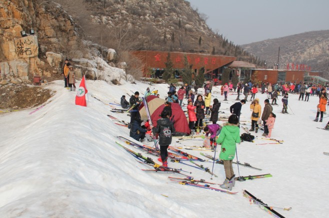 从飘扬的旗帜可以看出滑雪爱好者的重多!