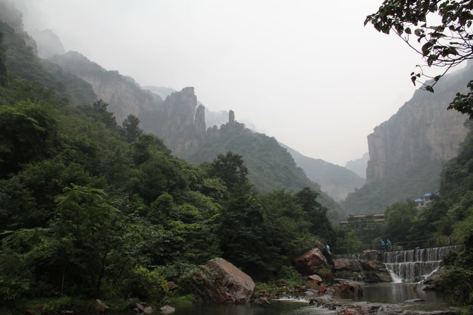 满怀激动地心情来到了我们向往已久的--河南八里沟,只是天公不作美,路上突然下起了毛毛细雨,不过,在八月天的毛毛细雨下游览,别有一番清新脱俗的味道。哈哈,八里沟我们来了。。