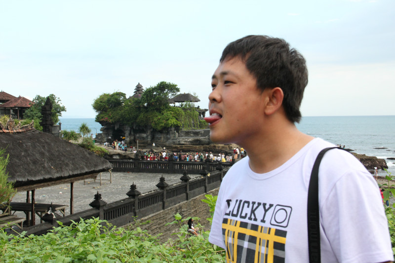 (海神庙)盖在海边的一块巨岩上,它是巴厘岛最著名的寺庙之一。涨潮时,此庙四周环绕海水,和陆地完全隔离。落潮时方可以相通。海神庙建于十六世纪,祭祀海神。