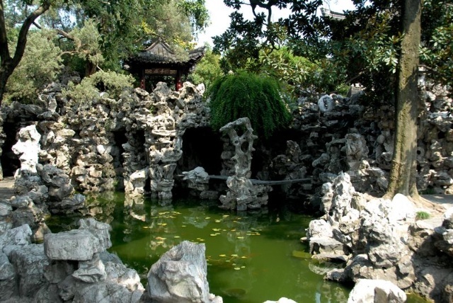 个园假山,一部分用黄山石叠成,山腹中有曲折磴道,盘旋到顶,这是北派的石法;一部分用太湖石叠成,流泉倒影,逶迤一角,是南派的石法。这两种叠石的方法,意味着山水画的南北之宗,统一在一个园子里,构成个园假山的独特风格。个园“四季假山”为国内唯一孤例。