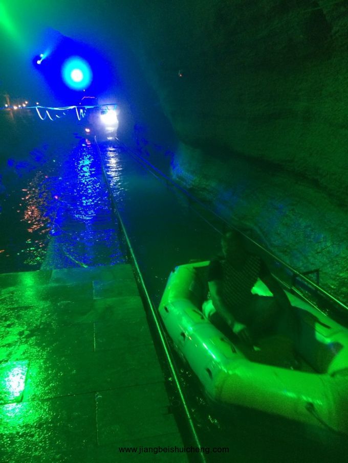 第二天游览地下大峡谷,地下大峡谷最出名的游玩项目当属地下漂流。地下河漂流项目经过改造,漂流长度由原来的723米延长到1000米。该项目已经得到上海大世界吉尼斯记录总部的认证,被誉为中国最长的溶洞漂流项目[。漂流道的改造设计充分体现了溶洞内的幽深莫测,起伏高下,波激浪涌,抑扬顿挫的特点和恐龙模型的阵阵吼声,将地下河漂流的原生野始,惊险刺激演绎的淋漓尽致。