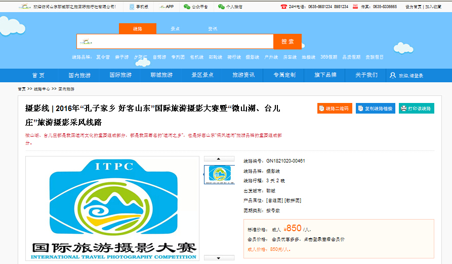山东聊城聊之旅国际旅行社有限公司发布的摄影旅游专项产品。