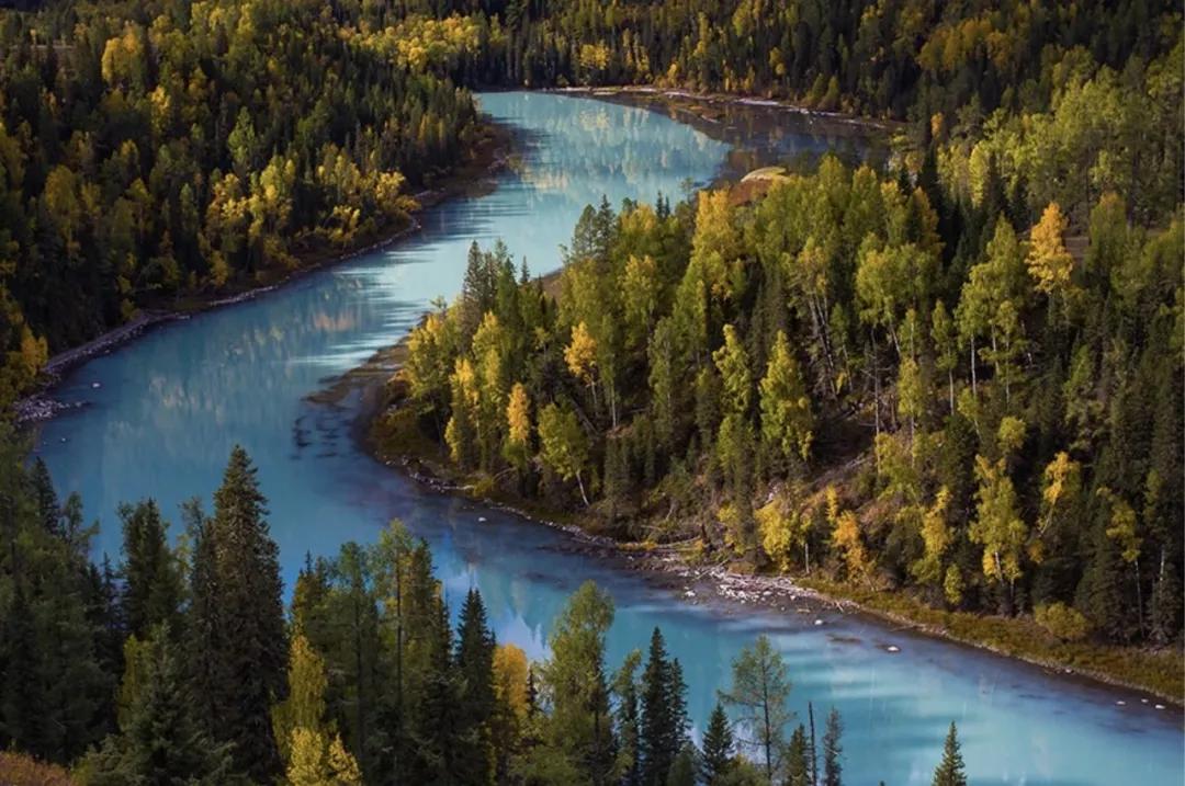 在喀纳斯,各式湖泊绝对是必访景点,湖底高低差加上光线的影响,总能给你意料之外的惊喜。而其中凭借地貌而走红的当属月亮湾,每到秋冬季节这儿挤满了前来拍照的人。
