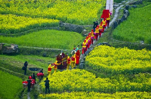 缓缓向四周蔓延的梯田油菜花