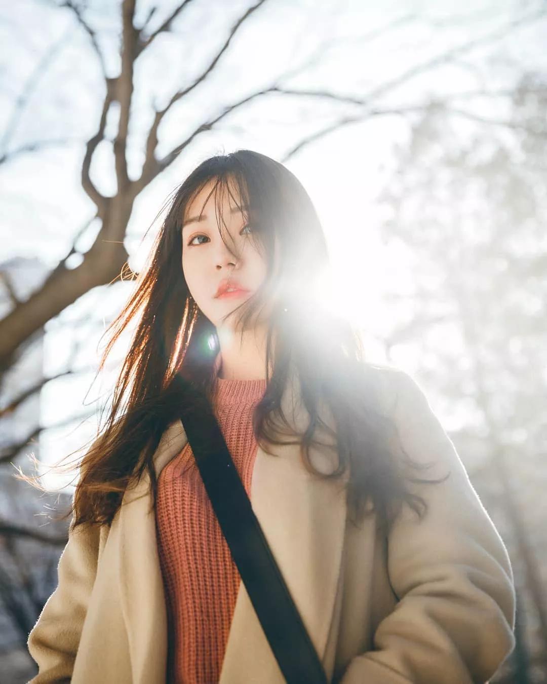 让妹子的头部遮挡身后太阳的部分,或者模特用手遮挡部分光线,减弱逆光的强度,画面更有朦胧的意境。
