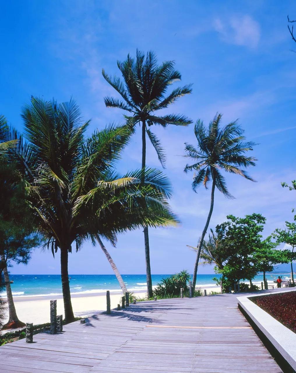 椰风拂绿岛,碧波逐金沙