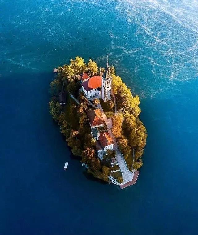 澄澈的布莱德湖的湖心之上,这座童话小镇就这么独自伫立着,只有坐着小船才能到达,仿佛真的与世隔绝。