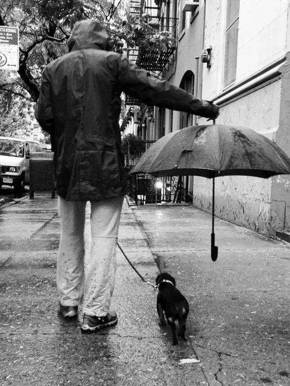 雨下的很大,他有伞,却只是把帽子戴在了头上......