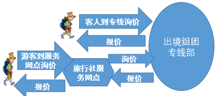 出境组团社服务网点(代理旅行社、在线平台)对游客报价=出境组团社报价+服务网点(代理旅行社、在线平台利润)。