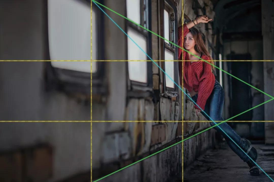 算是构图中运用最广泛的构图方式。其实也是黄金分割比例的简化版,其主要原理是让画面在横竖平面上各三等分,然后把拍摄主体放在其中的线或线的交点上。