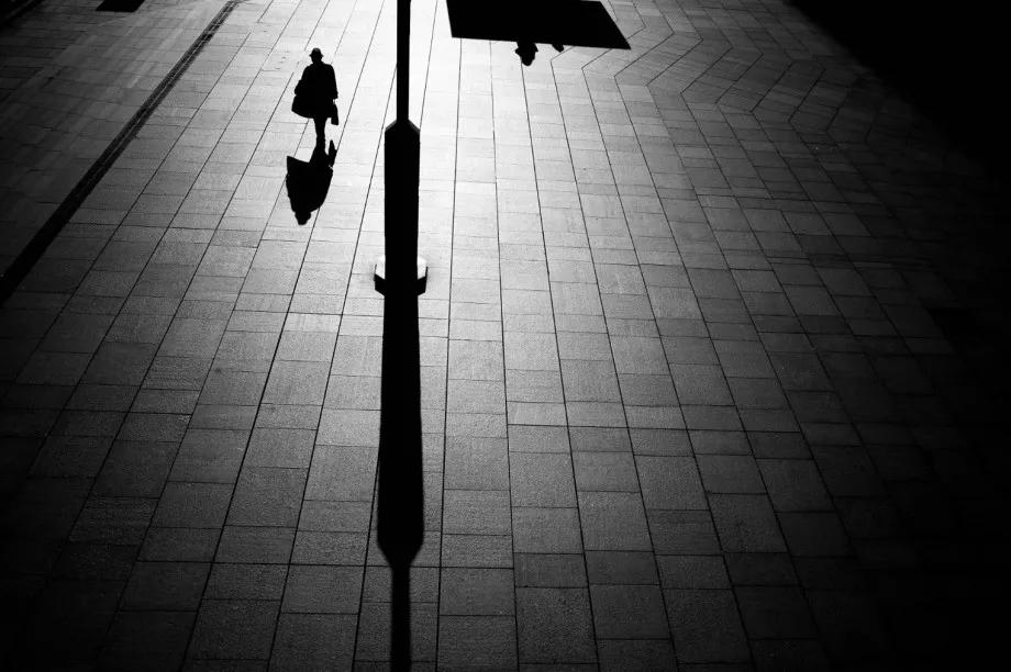 摄影图片:摄影师Junichi Hakoyama十分擅长拍摄高对比度黑白街头作品,善于利用场景中建筑物的线条,结合光影而形成明暗对比,加上充满故事性的单个人物融入其中,便成就影像拥有黑白默片的快感。