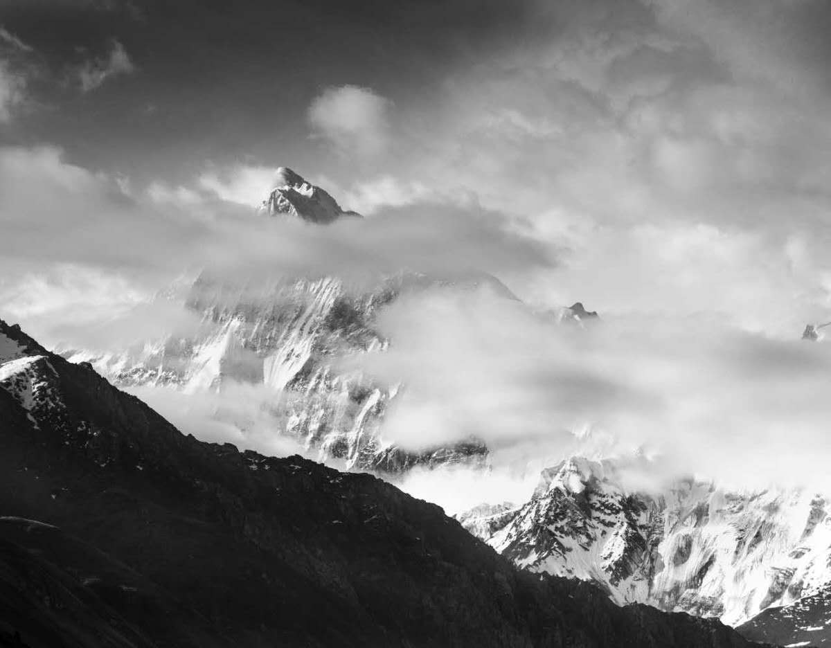 木扎尔特冰川是世界上绝无仅有的天然冰川,险隘处处,危机四伏,冰川、冰缝、冰河、冰塔、冰山以及汹涌的木扎尔特冰河都会给人难以想像的危险。我们有些冻僵了的身躯,只能依靠自己体力和毅力,在绝境处寻觅,在高海拔的冰川上艰难地前行。人行走在漫长的冰川上,就像行走在炼狱之上,如果双脚行走不稳或身体不能平衡支撑,就很可能带来滑倒的生命危险。可以想像如果稍不小心一下子滑倒,跌进万丈冰窟深渊,后果残忍不堪。临近傍晚,我们继续踏着冰川前行。由于冰川的退缩,冰川末端落差很大,这短短300米的距离落差竟达500米,而这段路线是木扎尔特冰川最为艰难险峻的路段。如果想下到谷底,想都不要去想,因为此处更是危险。我们艰难地下了冰川后,就进入了南木扎尔特河谷,河谷愈来愈宽阔,时下正值夏季,冰雪在尽情地消融,近800米宽的河床到处都是水。在河的东岸,有一处100多米长,近150米高的陡壁,滔滔河水从陡壁流过,冰川由此而中断。
