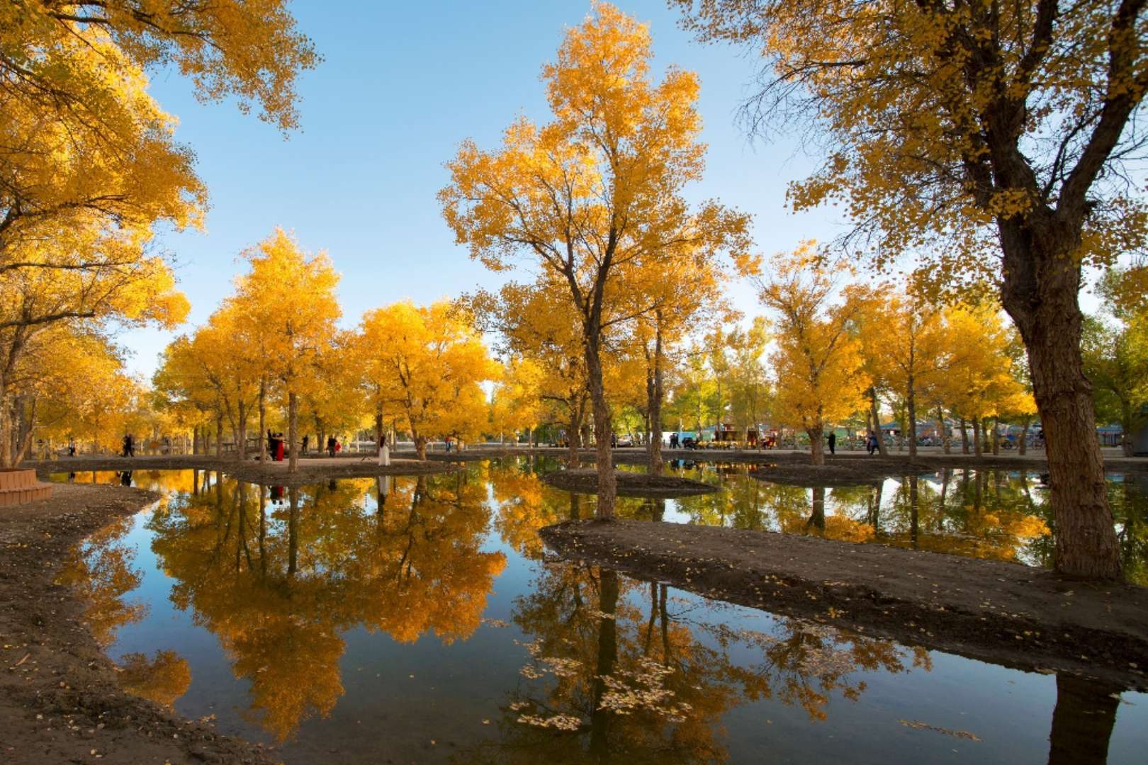 化的植物,大多是野生,被人们誉为“沙漠勇士”。胡杨林是一种神奇的群体,它们耐寒、耐热、耐碱、耐涝、耐干旱。胡杨生长期漫长,由于风沙和干旱的影响,很多胡杨树造型奇特、诡异,是一种神奇的自然景观和独特的人文景观,堪称大漠中的一颗绿色明珠,所以胡杨树有“活三千年不死,死三千年不倒,倒三千年不朽”之称。版权所有山东聊城聊之旅国际旅行社有限公司,转载必究!每年9、10月,当第一场秋霜,大片的胡杨林由绿变黄,一眼望去,阳光下金色的树叶趁着湛蓝的天空于风中婆娑起舞,那种强烈的反差,鲜明的影调,亮丽的色彩,足以令任何语言文字显得苍白无力。胡杨是中亚地区唯一适合生长的乔木,它是大自然漫长进化过程中幸存下来的宝贵物种。它妩媚的风姿、倔强的性格、多舛的命运激发人类太多的诗情与哲思。古往今来,胡杨已经成为一种精神而被人们所膜拜。