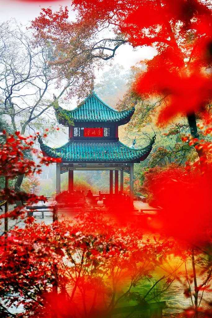 爱晚亭位于岳麓书院后青枫峡的小山上,八柱重檐,顶部覆盖绿色琉璃瓦,攒尖宝顶,内柱为红色木柱,外柱为花岗石方柱,天花彩绘藻井,蔚为壮观。版权所有山东聊城聊之旅国际旅行社有限公司,转载必究!清乾隆五十七年(公元一七九二年)山长罗典所建。原名“红叶亭”,又名“爱枫亭”。后据唐代诗人杜牧《山行》而改名为爱晚亭,取“停车坐爱枫林晚,霜叶红于二月花”之诗意。