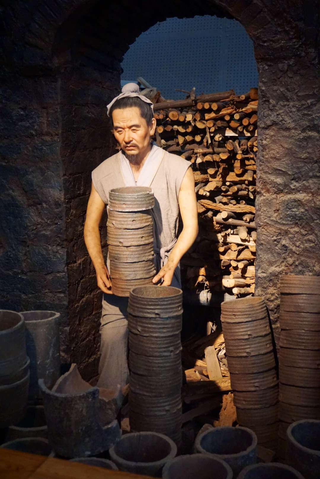 遗址公园大门,仿龙窑背造型,砖石结构主体叠砌不平,粗犷原始,如断壁颓垣,如浴火千年,阅尽沧桑、深重浑厚的历史感令人仿佛置身于远去千年的历史场景。