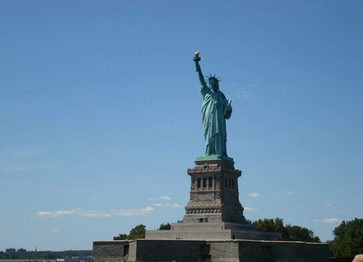 自由女神像(Statue of Liberty),又称“自由照耀世界”(Liberty Enlightening the World),是法国在1876年赠送给美国的独立100周年礼物。美国的自由女神像位于美国新泽西州泽西市哈德逊河口附近,是雕像所在的美国自由岛的重要观光景点。美国的自由女神像以法国塞纳河的自由女神像作蓝本,法国著名雕塑家巴托尔迪历时10年艰辛完成了雕像的雕塑工作,女神的外貌设计来源于雕塑家的母亲,而女神高举火炬的右手则是以雕塑家妻子的手臂为蓝本。自由女神穿着古希腊风格的服装,所戴头冠有象征世界七大洲及五大洋的七道尖芒。