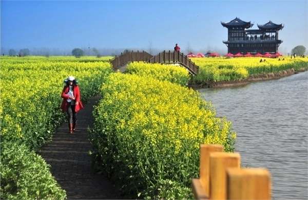 兴化千岛菜花风景区,位于江苏省兴化市缸顾乡东旺村和李中镇黑高村东侧,总面积近万亩。作为一座建成已有2300多年历史的古城,兴化有着深厚的文化积淀和独特的水乡美景:李中镇得水上森林公园,以“树在水中长,鸟在枝头唱”而闻名;郑板桥故居,不仅完整保存着郑板桥生前的生活用品,更有郑板桥手迹及历代文人名士的墨宝。此外,还有《水浒传》作者施耐庵的陵园、为明朝状元宰相李春芳所立的“状元坊”等一批文化景点。