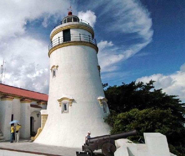 炮台上的圣母雪地殿圣堂建于1626 年。在最近的修葺中,在教堂内发现了华南地区罕见的壁画。这些壁画糅合了中西文化的特色,具有极高的艺术价值。 屹立在教堂侧的东望洋灯塔,是中国沿海地区最古老的灯塔,建于1865 年。灯塔高13 公尺,白墙红顶,雄伟挺拔。在晴朗的夜晚,澳门四周 20 里的范围内可以见到灯塔射出的灯光。