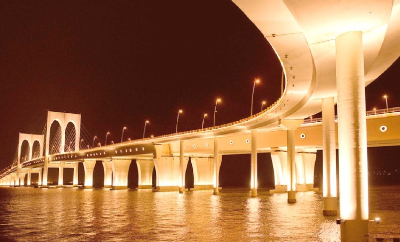 澳门地方小小,但已有三条跨海大桥,方便人们往来澳门半岛及氹仔,这三条大桥分别是总长2.5公里的嘉乐庇总督大桥(公交及的士专用)、4.5公里的友谊大桥(全澳最长),以及这次介绍的西湾大桥。这座新桥只有2.2公里长,它的出现,明显缓解了旧有两座大桥的汽车流量,同时亦大大改善了澳门本岛与离岛之间的交通状况。