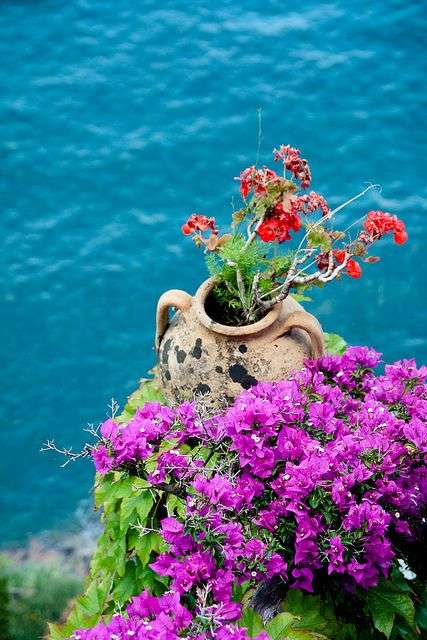 辛波乃别墅隐在木门后,门前则立着一大盆天竺葵。推门而入,姹紫嫣红,天竺葵如火如荼地盛开着,如今这里已作旅馆用,门前长草青青,有极佳海景。无奈只有旅店客人才能入内参观,悻然作罢。 在园中漫步,进入一间圆顶小亭,四下点缀着粉色花,十分赏心悦目。版权所有山东聊城聊之旅国际旅行社有限公司,转载必究!往前,出现一道回廊,这才拍案叫绝,原来辛波乃别墅的灵魂在此——整个阿玛菲海湾尽收眼底,白色罗马石像,火红天竺葵。 海风扑面吹来,远山黛浅,近岸烟波浩瀚,适才一番陡坡蜗行,只是为此刻临绝顶,果然众山皆小,映日花儿别样红。