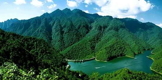 井冈湖(群峦湖)是一座拦江筑起的人工湖,块石浆砌的双曲拱坝,高92米,称之为中国吉尼斯纪录。湖面62万平方米,蓄水1870万立方。从南湖上船,经中湖,泛舟穿林,可驶向西湖和北湖,全长5.3公里。整个湖周围,林木密密层层,盘根虬枝,浓荫如盖。湖北的峡谷,长2500米。形成一根巨大的扁担,称之为“扁担崖”。崖顶端奇峰怪石,有几株台湾松点缀着,青云绕绕,婀娜多姿,活像一幅与天相衔的中国国画。从主峰大坝码头上游轮,可游览井冈湖,至水口石门码头上岸,又可游览水口各景点。