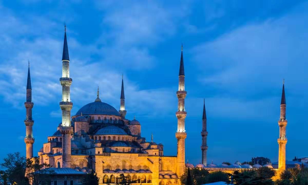 蓝色清真寺,原名苏丹艾哈迈德清真寺,土耳其著名清真寺之一,17世纪初由伊斯兰世界著名古典建筑师锡南的得意门生Mehmet Aga设计建造,因清真寺内墙壁全部用蓝、白两色的依兹尼克瓷砖装饰故名,是伊斯坦布尔最重要的标志性建筑之一。