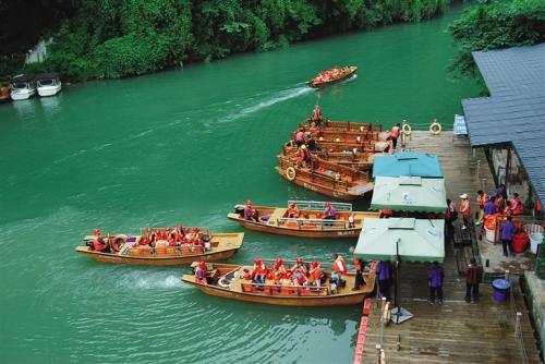 重庆蒲花暗河景区位于黔江区蒲花河濯水段,系阿蓬江的一条支流,暗河部分长1公里多,河水最深处达20余米,由蒲花暗河、天生桥群、大漏斗群、绝壁栈道、蒲花河大峡谷等组成,景点有天生三桥、黑龙潭、赤穴、大峡谷等。